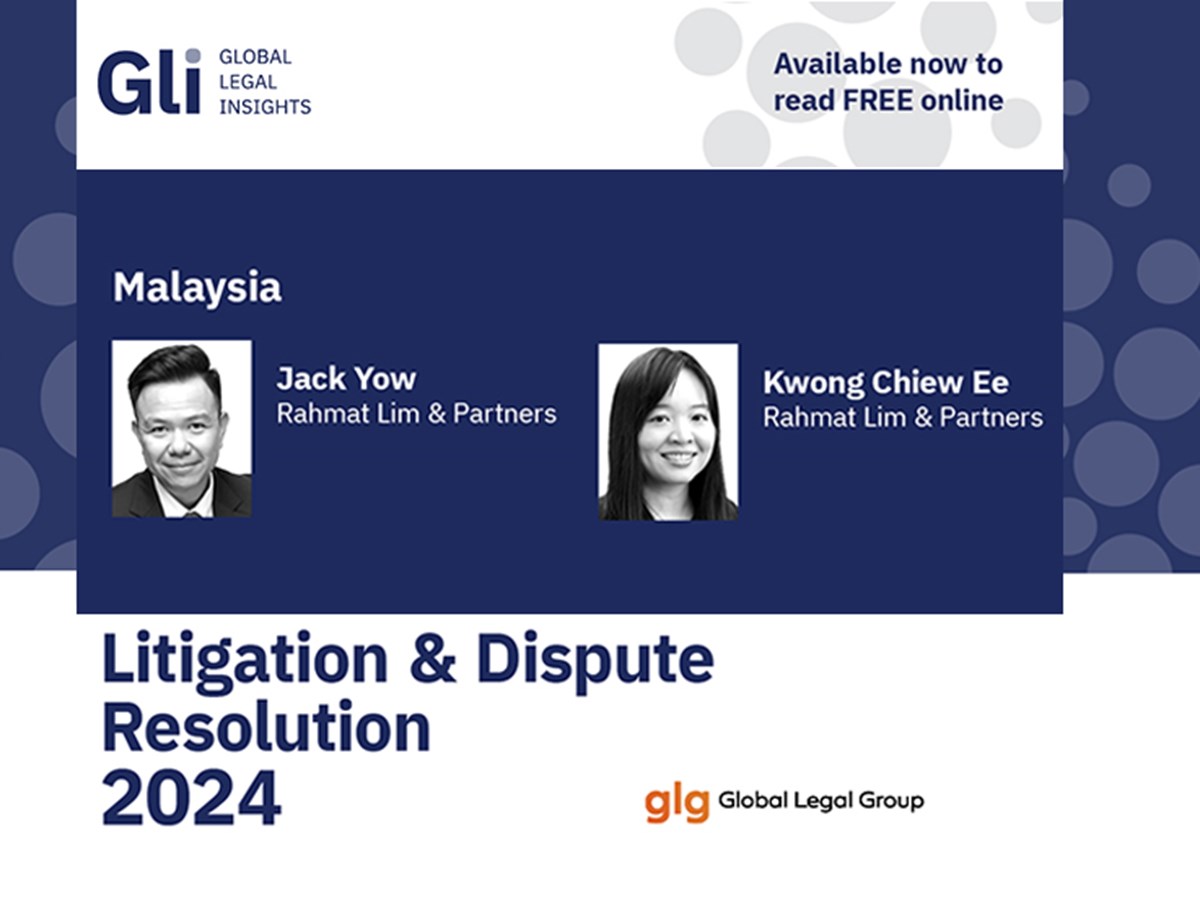 Partners Jack Yow and Kwong Chiew Ee of Rahmat Lim & Partners contributed the Malaysia chapter to Global Legal Insights to Litigation and Dispute Resolution 2024 (13th Ed) - Malaysia, published by Global Legal Group, London. The chapter covers key topics including the overview of the efficiency and integrity of process, privilege and disclosure, evidence, interim relief, enforcement of judgments and awards, cross-border litigation, international arbitration, mediation and ADR, as well as regulatory investigations.