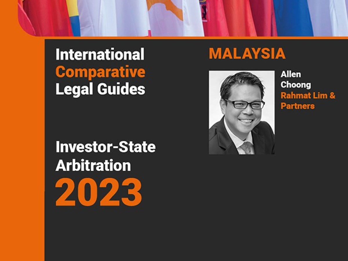 Partner Allen Choong of Rahmat Lim & Partners contributed the Malaysia chapter to The International Comparative Legal Guide to Investor-State Arbitration 2023, published by Global Legal Group Ltd, London. The chapter covers the status and future developments of treaties, legal frameworks, recent significant changes to treaty interpretation and policy with regard to investor-state arbitration, case trends, funding of investor-state claims, relationship between international tribunals and domestic courts and recognition and enforcement of an award.